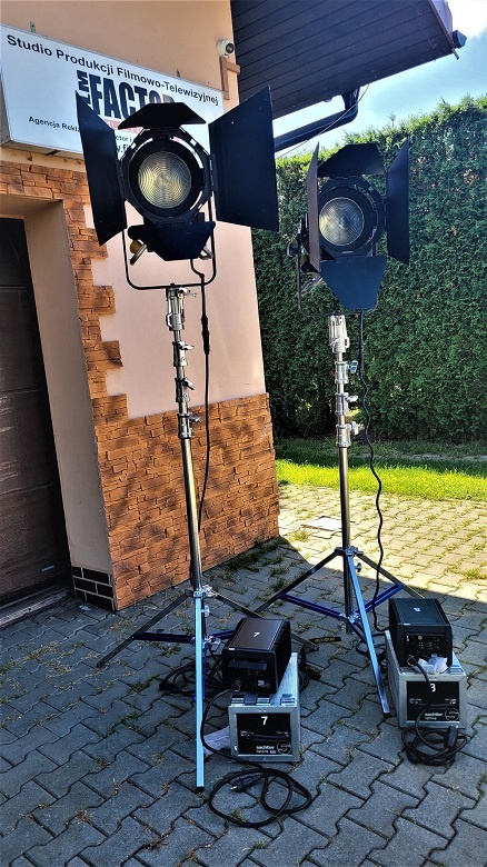 W oświtlenia jest 4 lampy Flo o temp barwy 5600 i mocy 2x800W i 2x600W na statywach amortyzujących. Dodatkowo filtry do barwy 3200